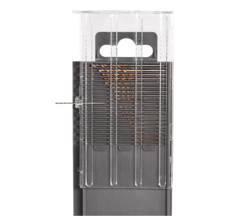 Για ειδικές εφαρμογές , την εργασία σε ηλεκτρονικές πλακέτες, τη δημιουργία κοσμημάτων, όλα τα τρυπάνια βρίσκονται σε εύχρηστο κουτί αποθήκευσης .